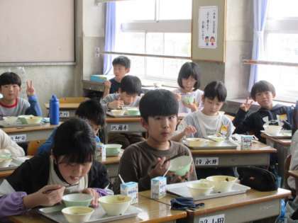 今日の給食は「ごはん」と「牛乳」