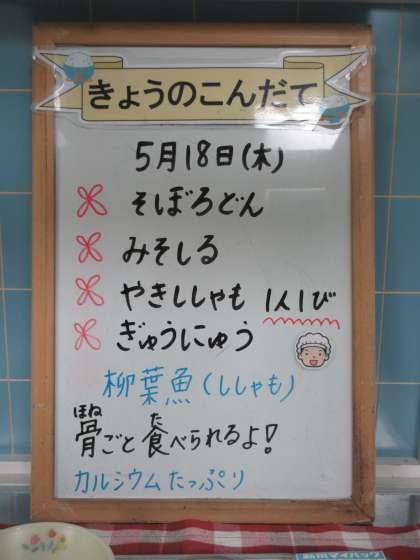 ししゃもは、漢字で「柳・葉・魚」と書きます。北海道のアイヌには、鮭がとれなくて困った時にお祈りをしたところ、柳の葉が落ちて魚になり、それがししゃもだったという伝説があるそうです。ししゃもは骨ごと食べるので、カルシウムがたっぷりとれる魚です。