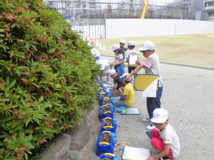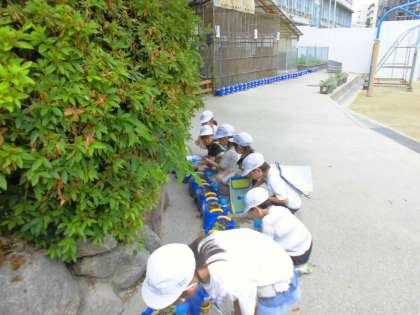 1年4組は5時間目にアサガオの観察に行きました。