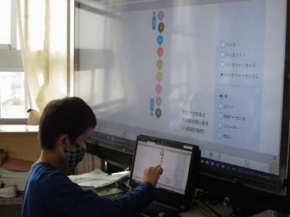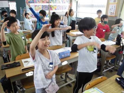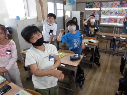 今日は、音の高さを手で表しました。低いドは手を低くして、高いドは手を思いっきり高くしてそれぞれが表現していました。最後は、「春の小川」の曲で手を上げ下げしながら音の高さを学びました。