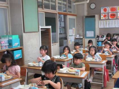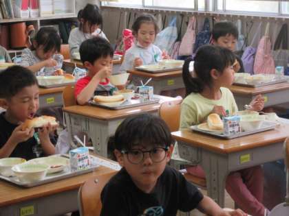 「押し麦入り豆乳スープ」と「ミートマカロニ」