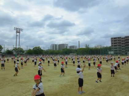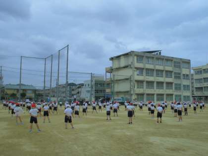 休憩時間になると中学生のお兄さんやお姉さんたちが運動場に出てきてくれて、2年生のダンスを応援してくれていました。