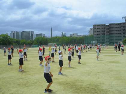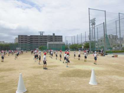 3年生は長尾中学に行くと、まず徒競走のスタートを確認していました。