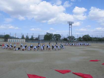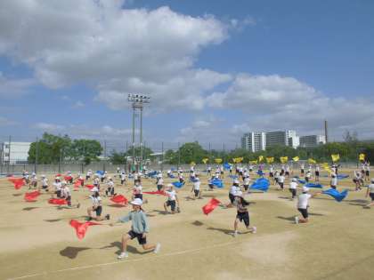 隊形の移動にも 公開日 2023/05/23 更新日 2023/05/23 6年生 6年生は優雅に、そして力強いダンスが魅力です。 隊形移動もさすがは6年生。少しの調整できれいに整いました。 フラッグがさらに演技を大きく見せています。