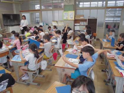 2年1組は先生からお手紙を配られていました。