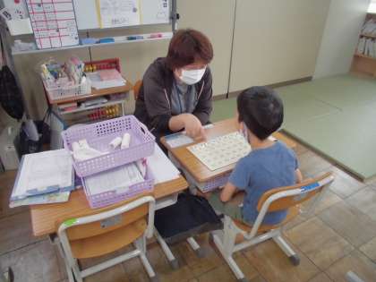 1年生も2年生と背中を向ける形で数字を学んでいました。