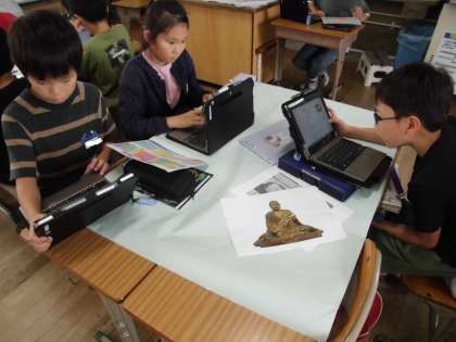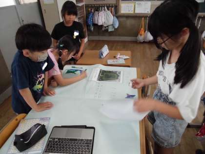 社会のわたしたちの市のようすの学習のまとめを行っています。今まで堺市のことをたくさん学んできたので、グループに分かれて紹介するポスターを作っています。