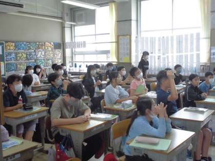 今日は日本の文化について学びました。伝統行事を英語で示されると、それが何かを想像しながら英語でこたえます。