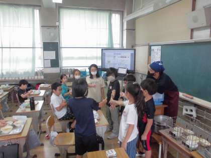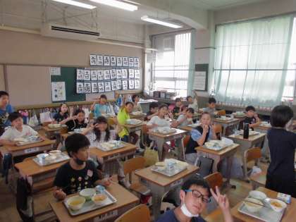 4年2組の給食では、牛乳ジャンケンをしていました。