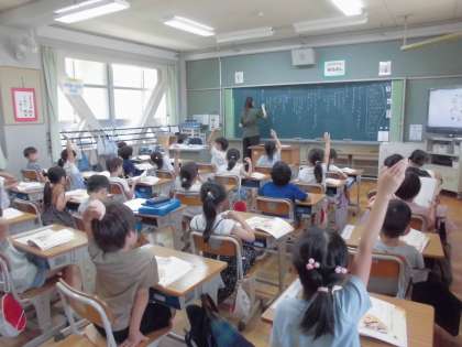 学校生活の中での「きまり」はどんなことがあるのか、きまりを守らなかったらどうなるのかをイラストを見ながら話し合いました。