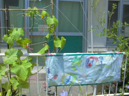 みんなで大切に育てている「すぎのこ農園」では、たくさんの野菜ができ始めています。きゅうりやナスといった野菜がしっかりと育ってきています。