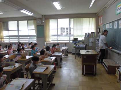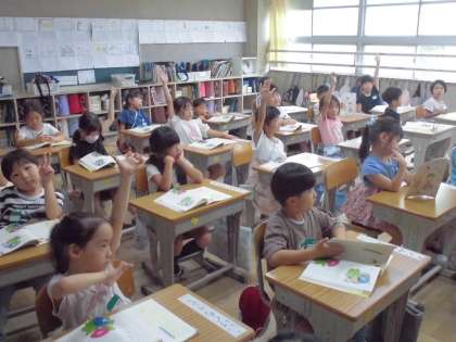 1年1組ではあさがおを題材としたお話を読んでいました。