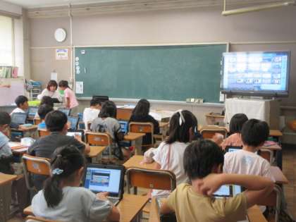 2年1組がタブレットを使って