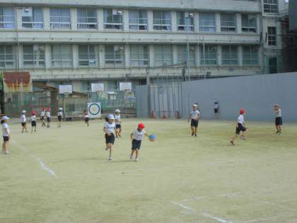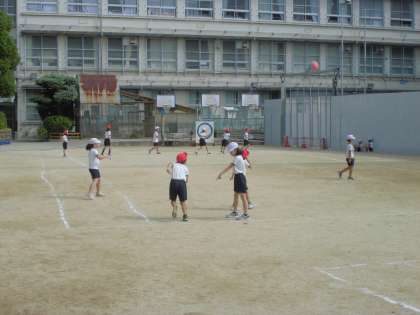 3年2組はボールを使った運動をしていました。