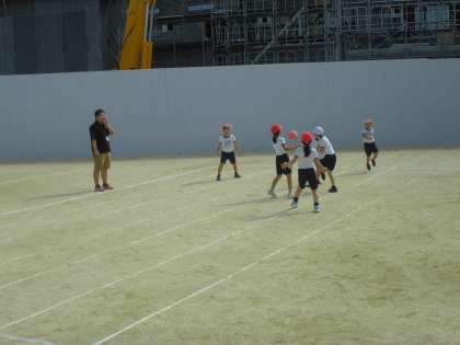 アメリカンフットボールのように、ボールは前方にしかパスできず、最終ラインにいる味方にパスが通れば得点するようです。