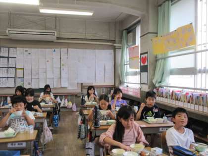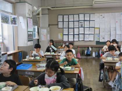 今日の給食は「ごはん」と「牛乳」