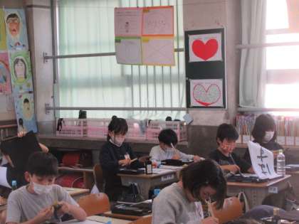 4年4組が書写の学習で