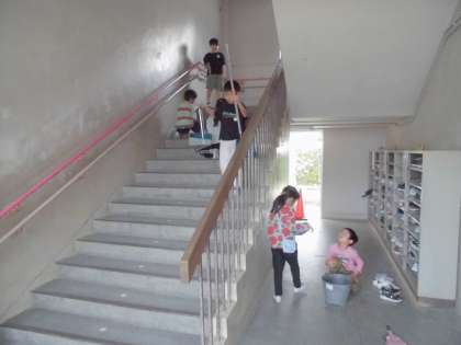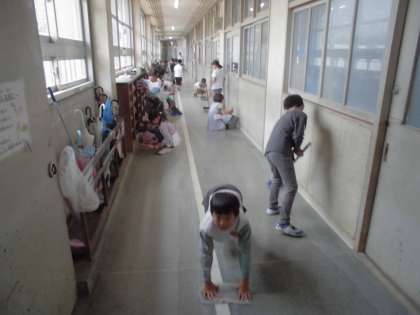 そんな中でも1・2年生のみんなは下駄箱の靴を出しては靴箱の中の砂を取り除いてくれています。