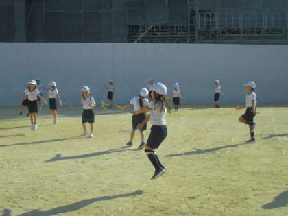 朝日の温かさも感じながら、元気に運動を楽しんでいます。