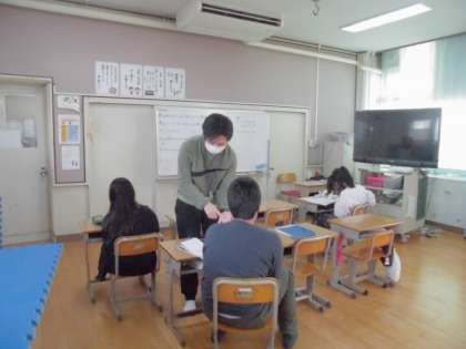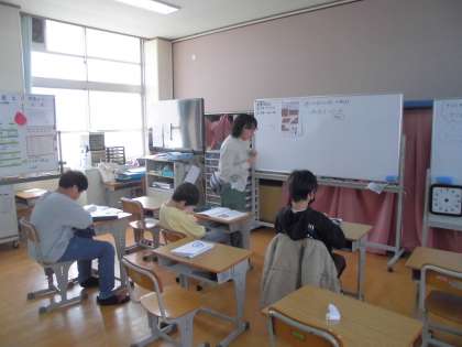4年生は面積の学習、6年生は比と分数の計算をしていました。