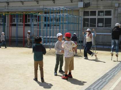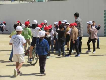運動場では先生も一緒に