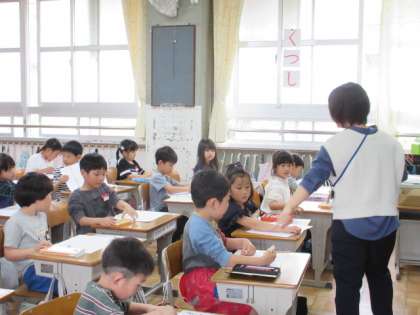 1年3組が画用紙に