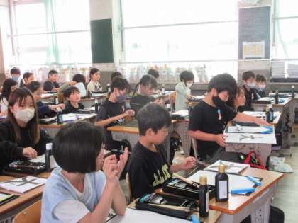 3年1組が書写の学習で