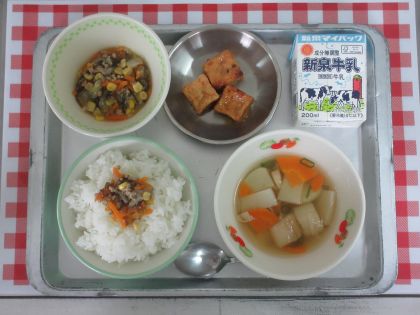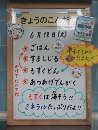 給食では、わかめやひじき、もずくなどいろいろな海藻を使っています。