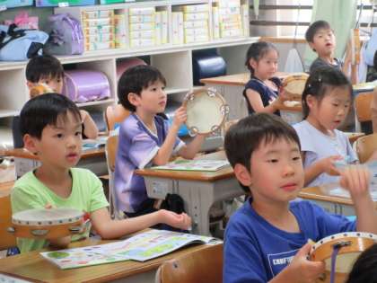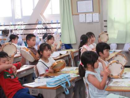 1年4組が音楽の学習で
