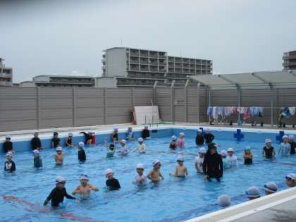 1年生が学校水泳に 取り組んでいます! 広いプール 少しずつ慣れてきたかな?