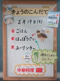 今日は「まぜたら秋の風味ごはん」です。栗やきのこなど、秋の味覚を楽しんでください。