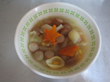 今日は、調理員さんが、マカロニスープに星の形の「ラッキーにんじん」を入れてくれました。