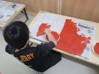 自立活動で2月と3月の壁面飾りの制作をしています。低学年チームは,木の幹の色をイ...