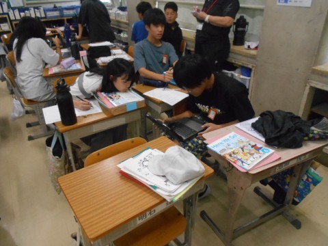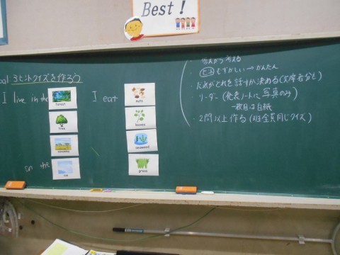 外国語の時間に,スリーヒントクイズを作りました。食べ物や住んでいる場所,体の特徴など,答えの動物つながるヒントを英語でどう話すかを考えました。クイズの出し合いをする日が楽しみです。