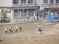 マット運動の開脚前転や後転に取り組み、友だち同士でアドバイスをし合っていました。