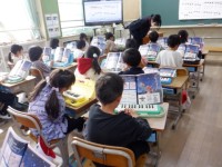 1年2組の音楽では、グループで音を聞き合いながら鍵盤ハーモニカの練習に取り組んでいました。