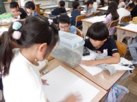 国語の時間ですが図工や生活科と関連した授業で、子どもたちはいきいきと活動していました。