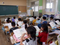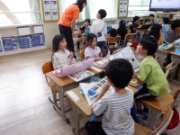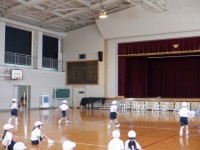 1年1組の国語では、みんなで「くじらぐも」の音読をしていました。