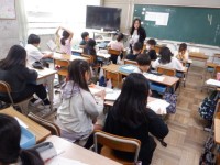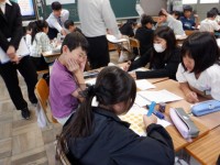 4年1組では、グループごとに防災に関するテーマを決めて発表する準備に取り組んでいました。