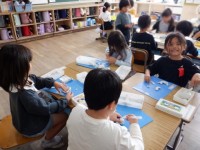 気持ちのよい秋晴れの下、友だちとボールをパスし合っていました。