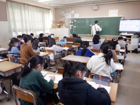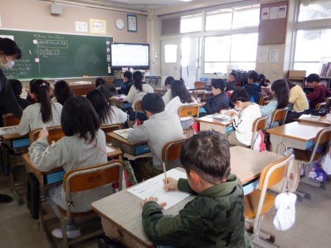 写真は1組と2組の授業風景です。