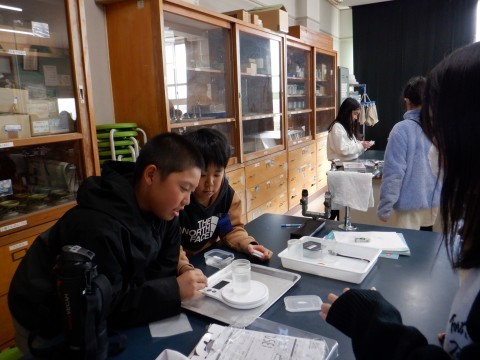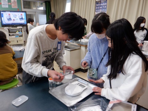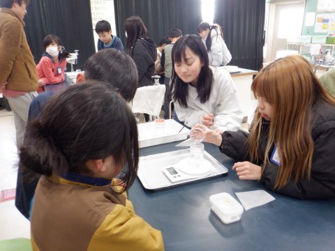 5年3組が理科室で実験をしていました。