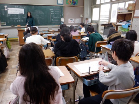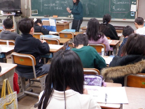 4年3組の算数では、面積の新しい単位「1a」について学習を進めていました。