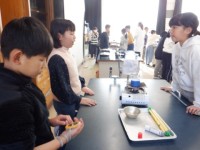 4年2組の体育では、バウンドキャッチバレーに取り組んでいました。