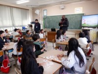 3年2組の算数では、指定された辺の長さで二等辺三角形を作図する活動に取り組んでいました。