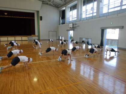 準備運動で,馬跳びやバービージャンプをしました。その後,長縄のターナーを決めました。