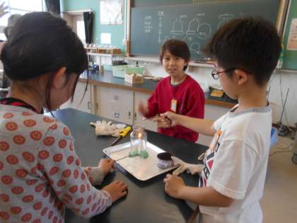 「ものが燃える時には空気がどう動くか」を実験して確かめました。