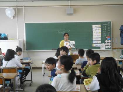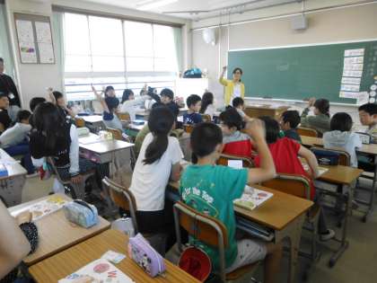 今週から中学校の先生が来て一緒に授業をしていきます。さっそく,自己紹介や簡単なゲームをしました。