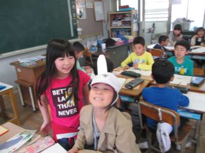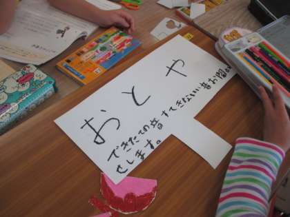 「きつつきの商売」の音読劇の練習です。衣装を作っている人もいました。