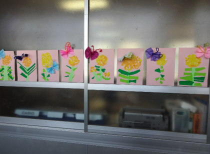 昨年度の新1年生見学・体験の際に作った、菜の花です。どれが自分が作ったものか分かるかな?穏やかな春を感じますね。